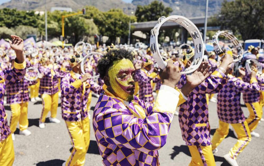 El desfile del año nuevo celebra la comunidad mestiza de Ciudad del Cabo, surgida de los esclavos llevados de África y de territorios del océano Índico tras la la colonización de la ciudad por los holandeses en los años 1650.