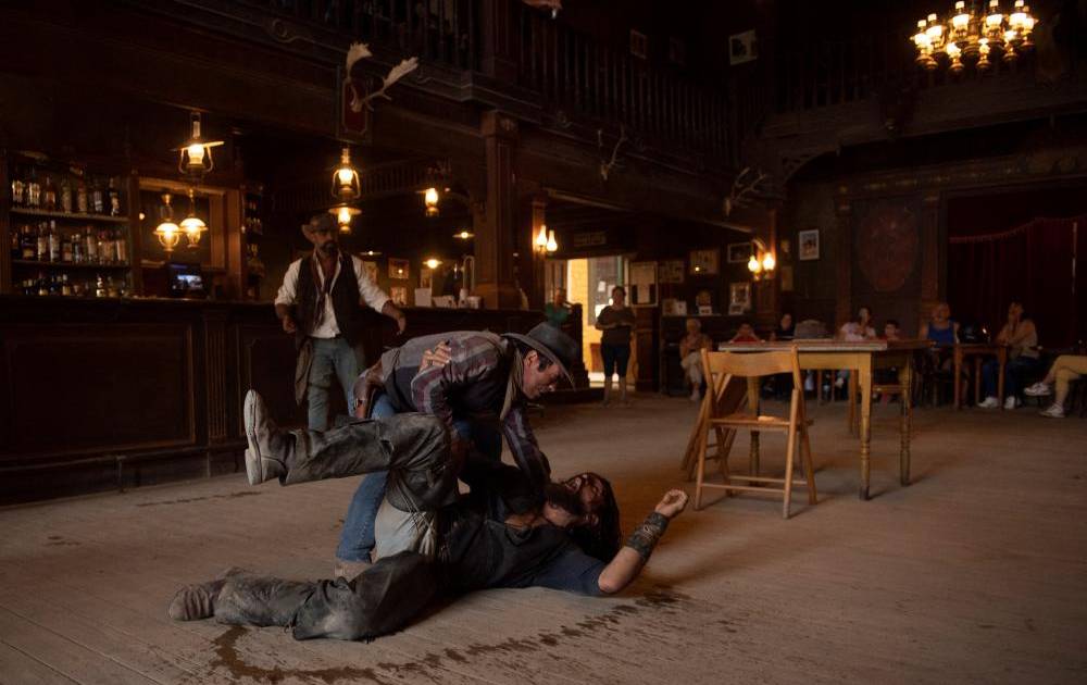 Con carruajes, una iglesia o incluso un ataúd, en Fort Bravo, uno de ellos, no falta detalle. El espectáculo corre a cargo de unos vaqueros ficticios que realizan representaciones a caballo que terminan con pólvora.