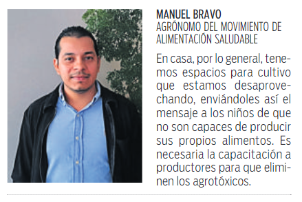 En casa, por lo general, tenemos espacios para cultivo que estamos desaprovechando, enviándoles así el mensaje a los niños de que no son capaces de producir sus propios alimentos. Es necesaria la capacitación a productores para que eliminen los agrotóxicos.