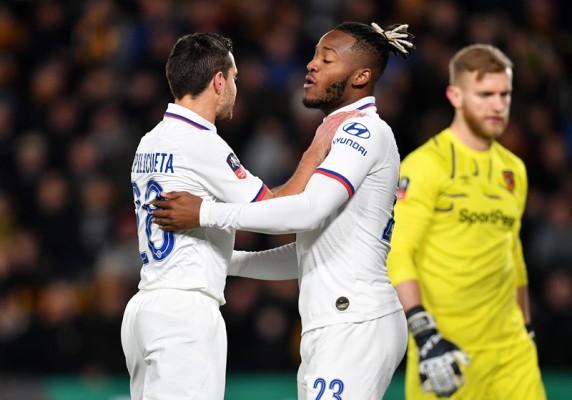 Los Blues del Chelsea, que jugaban de blanco, alinearon a pocos de sus habituales titulares frente a un equipo de la mitad de la tabla del Championship, como el Hull.