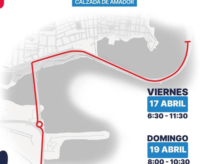 Para hoy, el cierre es de 6:30 a.m. a 11:30 a.m.; y domingo, de 7:00 a.m. a 11:00 a.m., desde el puente nuevo del Causeway hacia el tramo izquierdo hasta el área del Centro de Convenciones Figali, además del sector de la Plaza de las Banderas, donde estará ubicada la zona de transición y meta.
