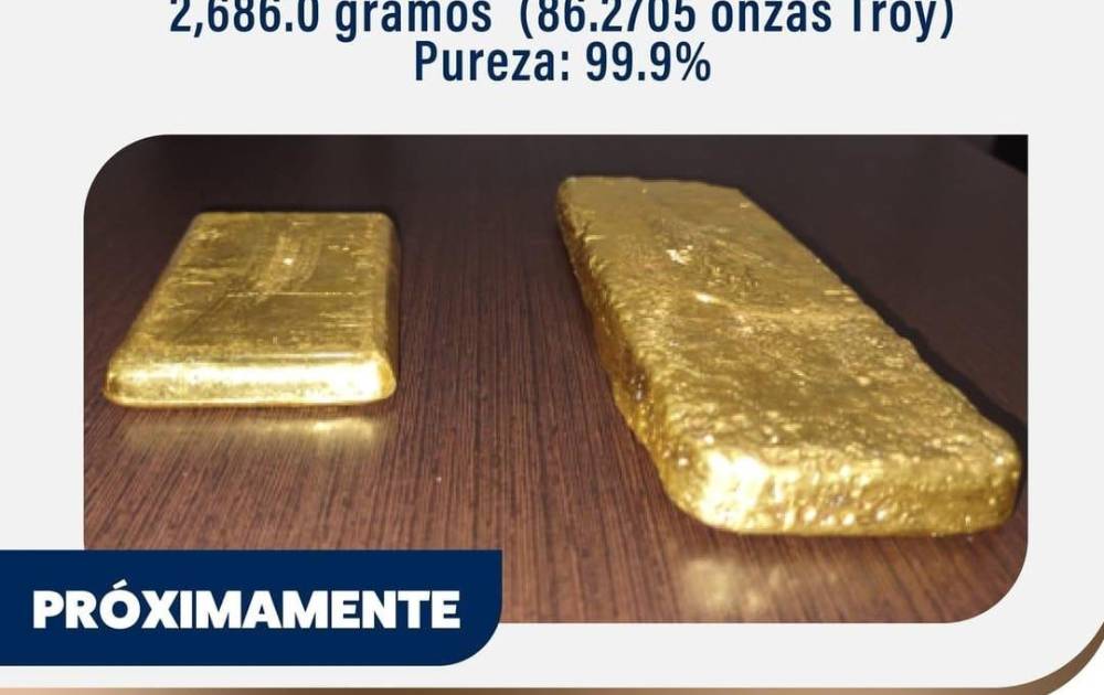 La dirección de Administración de Bienes Aprehendidos del Ministerio de Economía y Finanzas (MEF) informó que próximamente realizará la subasta pública de dos barras de oro. Las mismas tienen un peso de 2,686 g (86.2705 onzas troy) y una pureza de 99.9% oro.