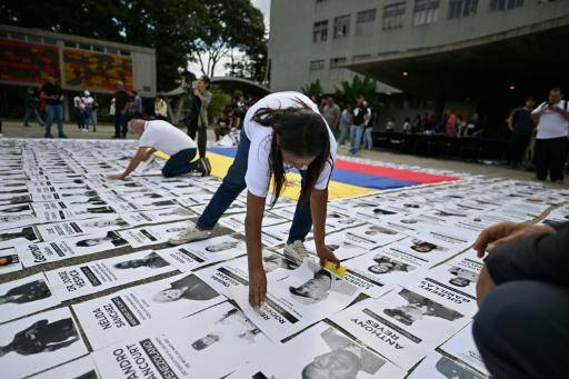 Una bandera venezolana rodeada por las fotos de centenas de detenidos ocupó parte de la plaza principal de la Universidad Central de Venezuela (UCV), la mayor del país.
