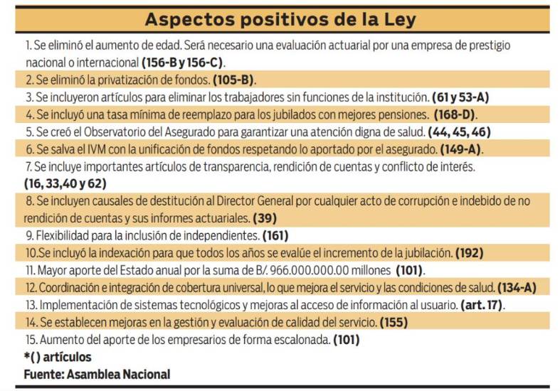 Que el director de la Caja de Seguro Social (CSS) pueda comprar medicamentos e insumos médicos individualmente, hasta por un millón de balboas, garantizar el trato humanizado al asegurado y la continuidad del servicio, la adición de artículos que establece causales claras para la destitución del director de la entidad y los trabajadores que no cumplan con sus deberes, son algunos aspectos beneficiosos dentro de la reciente promulgada Ley N° 462 que reforma la entidad, plantea el economista Francisco Bustamante.