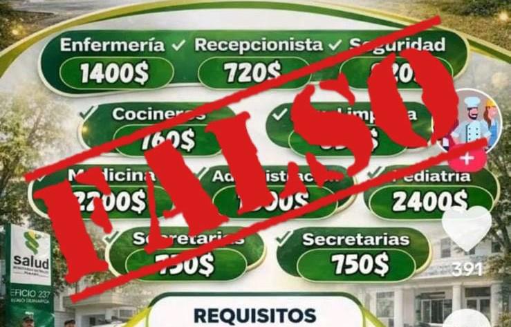 El Ministerio de Salud (Minsa) aclaró que una imagen que circula en distintas redes sociales, en la que se anuncian supuestas “vacantes abiertas”, es falsa y no proviene de ninguna de sus plataformas oficiales.