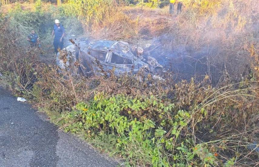 En el lugar, dos vehículos sedán colisionaron, provocando que uno de ellos se incendiara por completo, según el reporte de las autoridades.