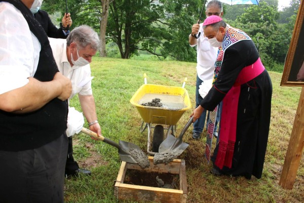 Al colocar la primera piedra en un terreno bendecido momentos antes, Ulloa aprovechó para ubicar en el mismo sitio una pequeña imagen de la Virgen de Fátima, y una estampa de San José, de manera “que esos dos santos que tanto amaron y cuidaron a nuestro Señor, acompañen la construcción de esta Capelinha, y a las personas que peregrinarán aquí en búsqueda de paz”.