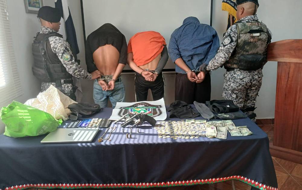 En menos de 12 horas fueron aprehendidas tres ciudadanos, por su presunta vinculación al robo con arma de fuego, en perjuicio de una persona, quien fue impactada en su pierna y despojada de sus pertenencias, en el distrito de Nole Duima, en la Comarca Ngäbe-Buglé, indicó el director nacional de seguridad nacional, comisionado Edgardo Núñez.