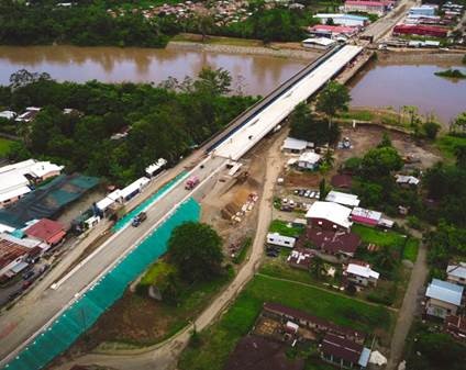 El puente de 260 metros de largo y 17 metros de ancho que enlaza a Panamá con Costa Rica sobre el río Sixaola, presenta un 94% de ejecución, de acuerdo a las autoridades de obras públicas de ambos países.