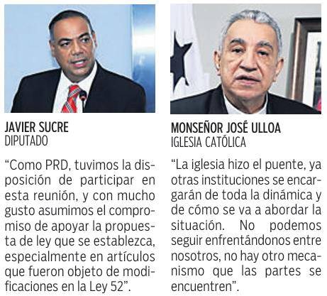 El diputado Javier Sucre, del Partido Revolucionario Democrático (PRD), expresó: “Nuestro compromiso es que esta ley sea aprobada en consenso con ellos, siempre y cuando estén de acuerdo. Garantizaremos que se logre un consenso que les brinde tranquilidad respecto al tema de la Ley 52”.