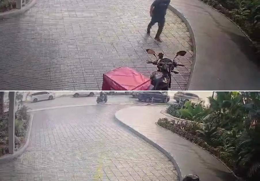 Un video de una cámara de seguridad mostró a un motorista cuando corta los cables de un repartidor de una aplicación, que no apoya la huelga en PedidosYa. A otros motoristas les están pinchando las motos.