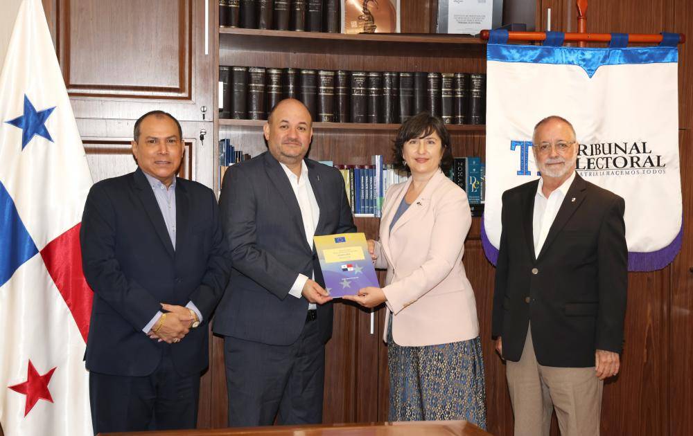 Los magistrados del Tribunal Electoral (TE) recibieron este martes, 8 de octubre, a una delegación de la Unión Europea en Panamá, que entregó el informe final de la Misión de Expertos Electorales Europeos realizada durante la Elección General del pasado 5 de mayo de 2024.