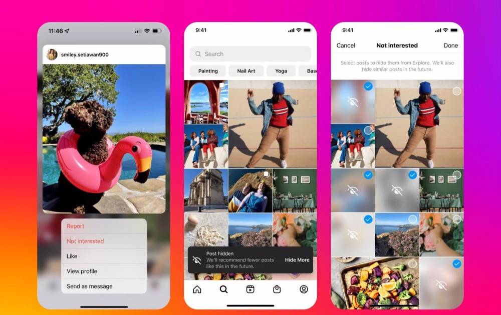 Otra novedad de Instagram se dirige a la gestión de las recomendaciones. En concreto, los usuarios podrán indicar en Explorar que una publicación no les interesa, lo que evitará que se muestren contenido similares. También podrán bloquear su aparición mediante palabras clave, emoji o ‘hashtags’ desde los ajustes de privacidad.
