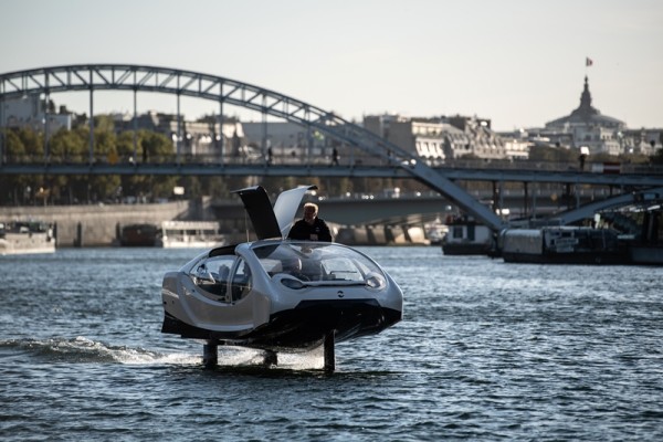 Llamados "Sea Bubbles", estas embarcaciones aerodinámicas blancas, sobrevolaron el río Sena a una velocidad de hasta 30 km/hora, flotando a unos 50 centímetros sobre el agua.