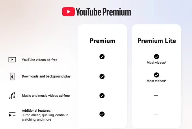 YouTube ha extendido las funciones de reproducción en segundo plano y las descargas, hasta ahora exclusivas en sus versiones de suscripción más avanzadas, para los usuarios suscritos a YouTube Premium Lite, el plan más asequible.
